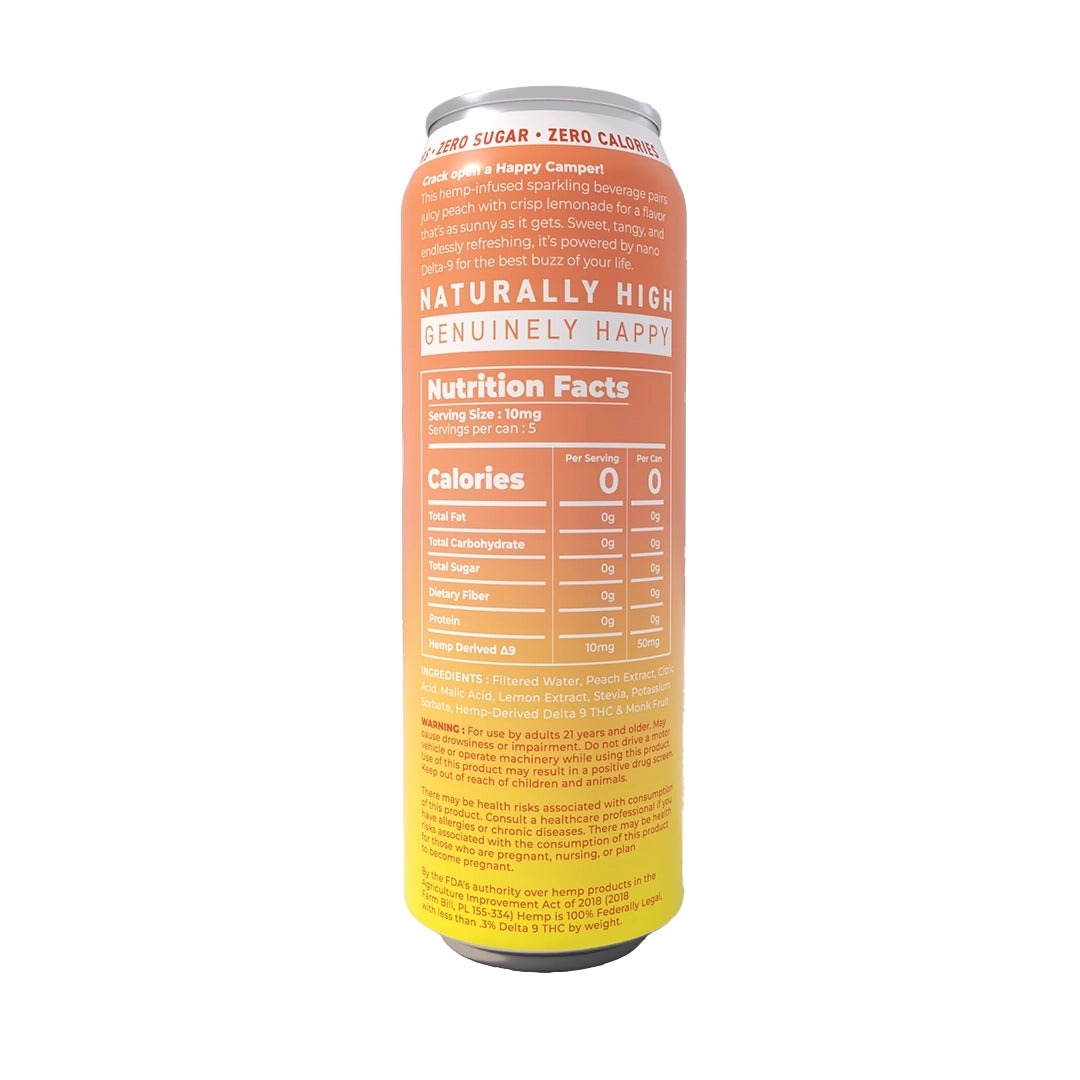 This hemp-infused sparkling beverage combines the juicy sweetness of ripe peach with the zesty brightness of lemonade for a perfectly refreshing sip. Smooth, citrusy, and uplifting, it’s powered by nano Delta-9 to deliver the best buzz of your life with zero sugar, zero calories, and zero artificial flavors.